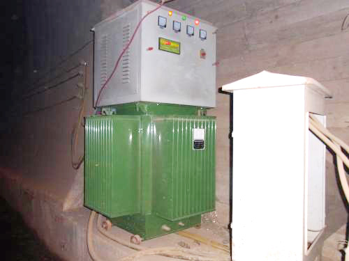 采用隧道外的低壓(380v)經(jīng)過升壓變壓器變?yōu)楦邏海盟淼纼?nèi)低壓導(dǎo)線把高壓保送到二襯臺車左近,再經(jīng)過降壓變壓器把1高壓變?yōu)?80v,再經(jīng)過穩(wěn)壓變壓器穩(wěn)壓就能夠正常運(yùn)用。