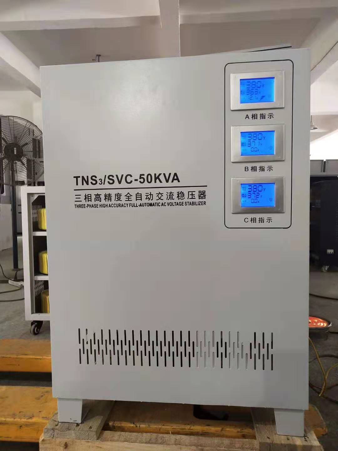 SVC系列單、三相高精度全自動交流穩壓器(穩壓電源),由接觸式自耦高壓器、伺服式電動機、自動控制電路等組 成,當電網電壓不穩定或負載變化時,自動采樣穩壓器控制電路發出信號驅動伺服電機,調整穩壓器自耦調壓器碳刷的 位置,使穩壓器輸出電壓調整到額定值并達到穩定狀態。