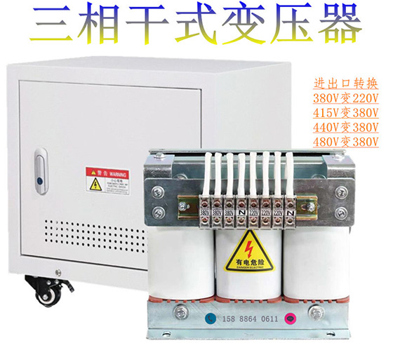 變壓器的額定容量和輸入輸出電壓均可按需定制,常規電壓有220v變380v,380V變220V,380V變200V,380V變380V,415V變380V,440V變380V,660V變380V,690V變380V,1140V變380V,380變208V等。