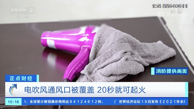 消防人員提示:使用電吹風(fēng)時(shí),切勿覆蓋出風(fēng)口和進(jìn)風(fēng)口,一旦覆蓋,可能使電吹風(fēng)內(nèi)部產(chǎn)生大量積熱,引燃周圍可燃物,進(jìn)而引發(fā)火災(zāi)!