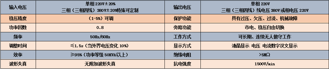 (1)實(shí)用:主電路采用補(bǔ)償結(jié)構(gòu),功率容量大,運(yùn)行維護(hù)簡便。高達(dá)±20%的穩(wěn)壓范圍和±2%的穩(wěn)壓精度,能夠充分滿足您和負(fù)載的要求。