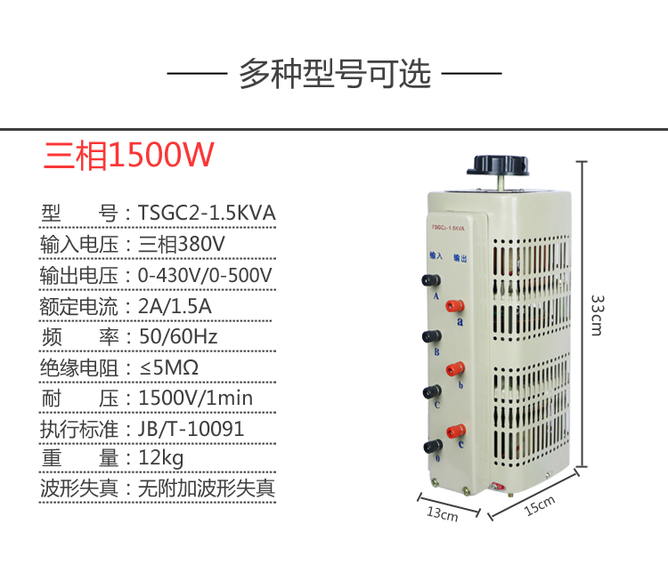 我公司生產的調壓器是接觸式調壓器,具體的規格、型號如下: