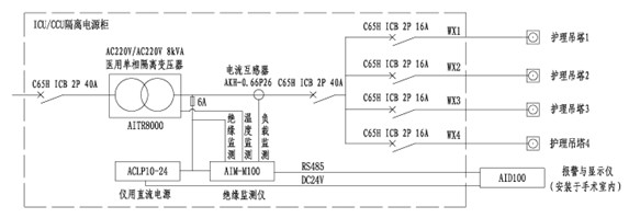 ICA100系列醫用系列產品是醫院等醫療場所IT隔離供電系統的成熟、可靠、具有極高性價比的方案。 隔離電源系統一般由絕緣監視儀,外接報警測試面板和隔離變壓器組成,其他名稱包括:手術室隔離電源,醫用隔離電源、醫用IT隔離電源、醫療隔離電源、醫用漏電檢測儀、醫用漏電流檢測儀、醫用絕緣檢測儀、手術室絕緣檢測儀 用隔離變壓器以分隔非保護區域與保護區域,在隔離變壓器的次級引出IT系統的電源,以防止產生接地故障電流。其常規容量在1KVA-20KVA之間,常規為5KVA、7KVA和10KVA居多。