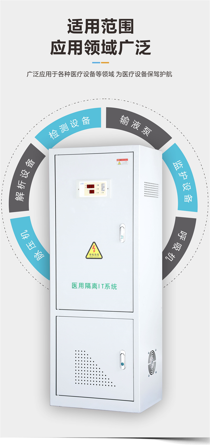 在醫療領域,由電網電源供電,用于維持生命或外科手術的醫療電器設備,以及用于手術室照明和類似照明設備,額定電壓超過AC25V 或DC60V的設備,必須使用帶絕緣電阻監視儀的IT系統。醫用IT隔離變壓器電源系統稱之為安全隔離電源的供電系統-醫用it隔離變壓器絕緣監測系統,在醫療領域某些場所因對供電持續性要求很高,故設計單相隔離變壓器把TN供電變成不接地的IT供電系統。