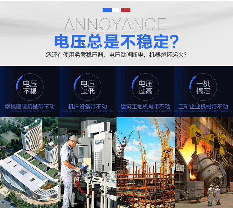 最后就購買穩壓器了,為了日后業務的擴展,為了增加一些設備,穩壓器要預留一定擴展空間。隨著現在電器日益發展,建議加工作坊或者工廠使用大點的穩壓器處理。