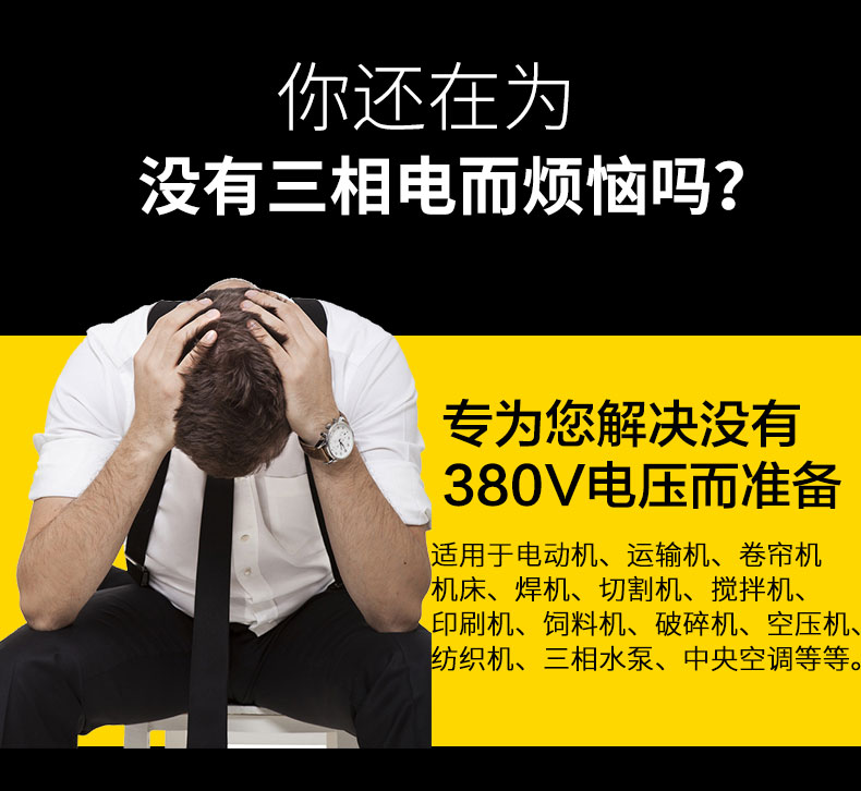 如:電動機輸送設備、各類機床、各類焊機、切割機、混凝土攪拌機、養殖場飼料拌料機、印刷機、空壓機、卷簾機、紡織機、榨油機、破碎機、三相水泵、較大功率中央空調、小型移動通訊基站等。 本產品是專為國內普通民用線路容量設計,凡是使用電子電表的居民家庭,均能使用。電價也是按民用照明電價計算,合理為用戶爭取實惠。