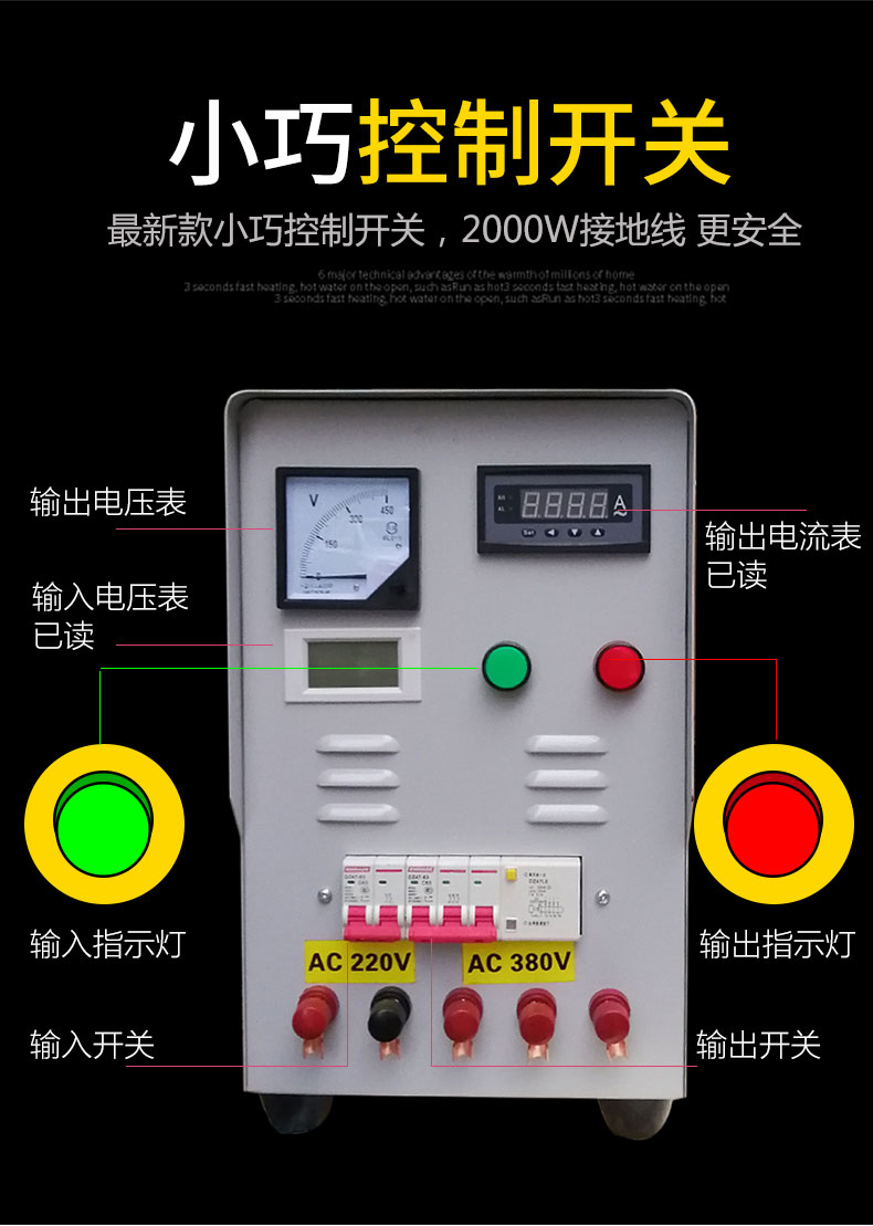 (3 操作簡單,使用方便,無需調試,用戶到手接線即可工作。按照擬使用功率在居民用戶電表下,接好相應的空氣漏電開關和相配的電源線,連接好變壓器和機器就可以使用。
