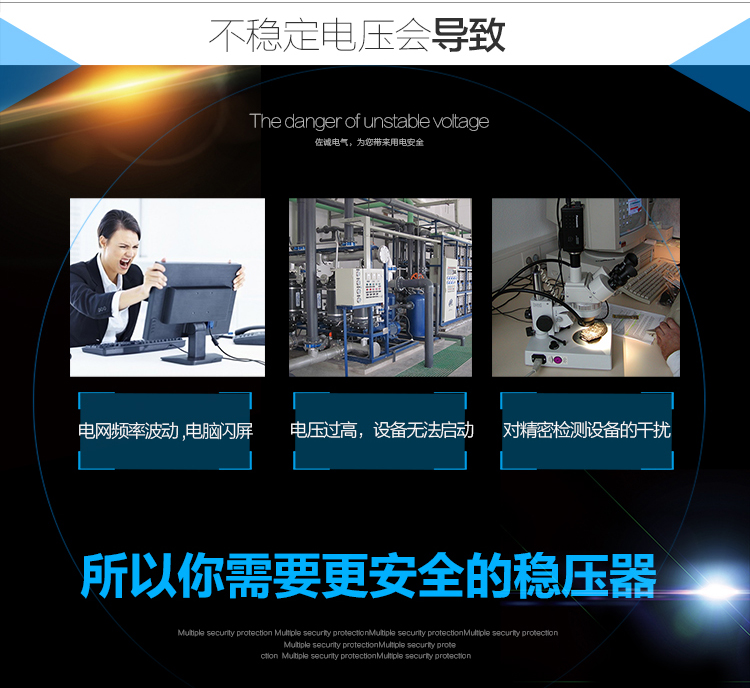 內部采用模組化設計,所有元件均以標準規格化,且主要結構線圈部份,平常只要保持外部清潔,無需任何保養及維護。簡易指撥設定功能 穩壓控制板對穩壓率設定采用人性操作設定方式,利用指撥開關作段性設定,有別一般利用VR調整的不可靠及調整上之難度特性優點。