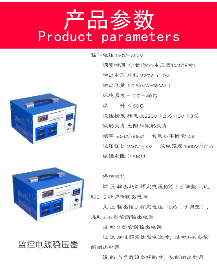 220v監控電源由臺州力威電源科技有限公司提供,220v監控電源,監控穩壓器、穩壓電源(廠家現貨)供應,力威監控穩壓電源是一款監控專用電源,電壓穩壓功能,采用先進智能控制,穩壓快速,操作方便,提高穩壓輸出精度,采用補償送加原性,效率更高,更節能,超寬穩壓范圍設計,超壓/欠壓保護,延時功能,整機干式免維護,體積小,重量輕、安裝方便。