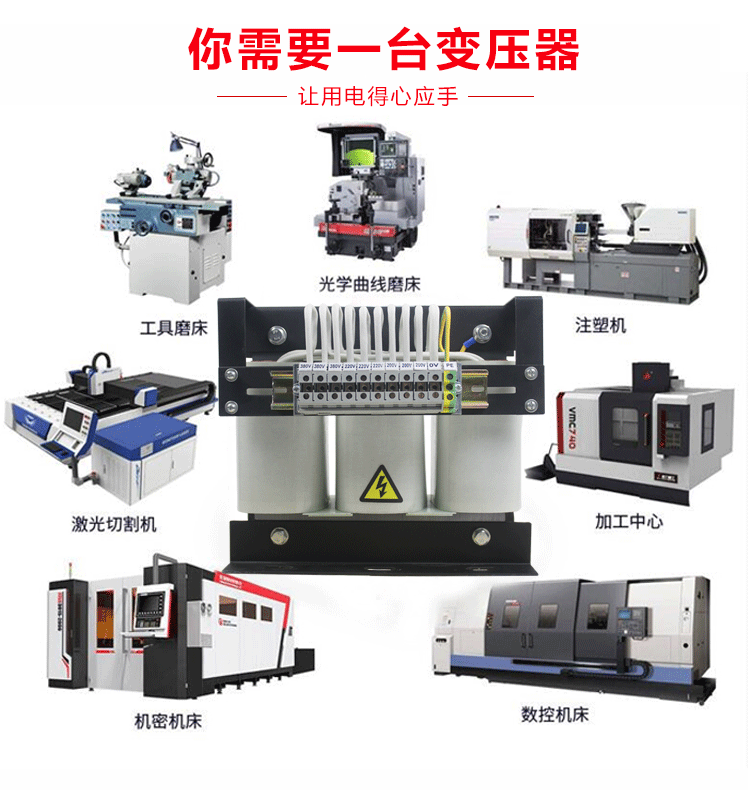 該系列變壓器廣泛用于進出口設備、地鐵、高層建筑、機場、車站、印刷、機床、碼頭、工礦企業及隧道的輸配電及進口設備的使用等場所.因當地電壓不同,須轉換電壓之場所,專為電氣機械設備而量身定做。