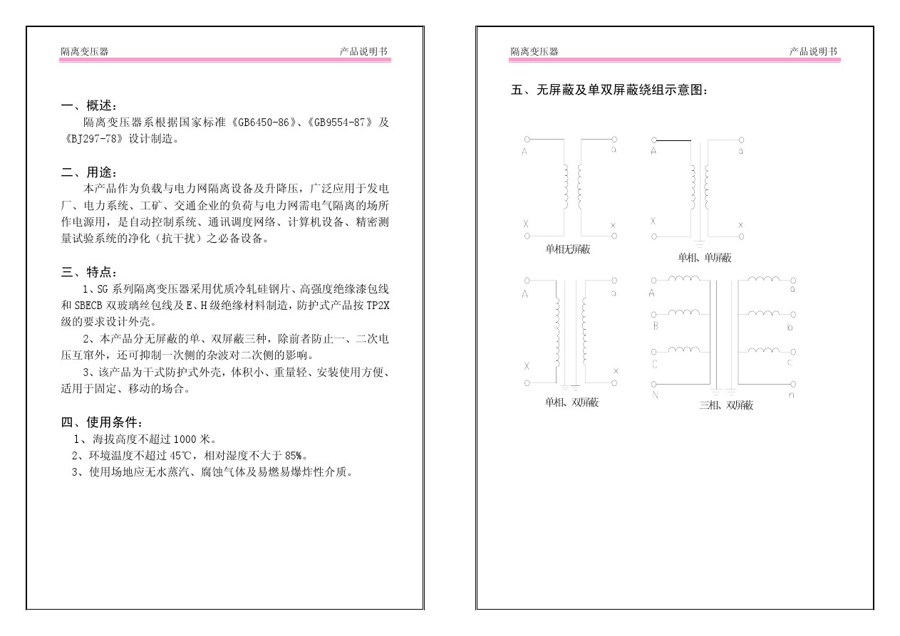 三相隔離變壓器SG,變壓器接線圖,隔離變壓器說明書